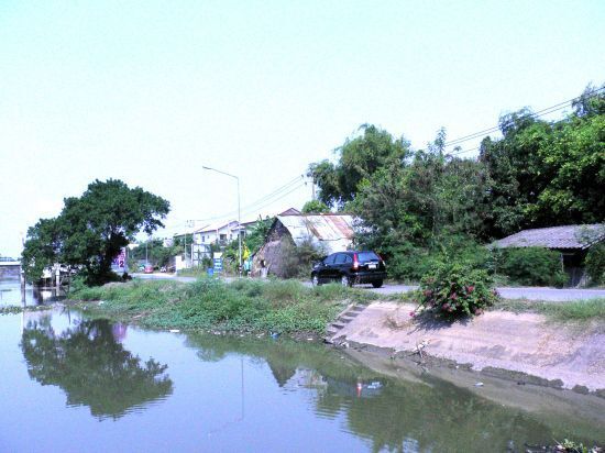 หน้าที่ดินติดกับถนนลาดยางเลียบตามลำคลอง (คลองหก) ที่ดินห่างจากถนน