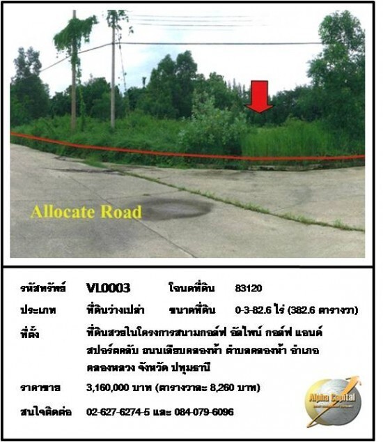 ขายด่วน!! เนื้อที่ 382.6 ตารางวา ในสนามกอล์ฟอัลไพน์ใกล้สนามไดร์ฟกอล์ฟ