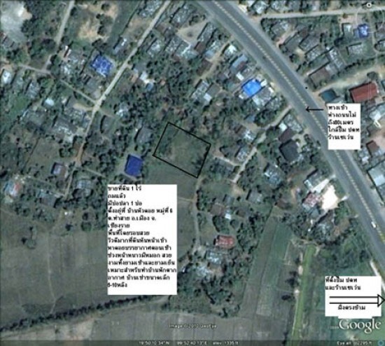 ที่ดินสวยขนาด 1 ไร่ เหมาะสำหรับทำบ้านพักตากอากาศ ตั้งอยู่ที่ บ้านหัวดอย หมู่ที่ 6 ต.ท่าสาย อ.เมือง จ.เชียงราย พื้นที่รอบๆสวย บรรยากาศดีมากๆ มีบ่อปลา 1 บ่อ ต้นสัก ต้นไม้หลายชนิด อยู่ติดเขา หันหน้าหาเขา วิวยามเย็นสวยงาม ประกาศขายในราคา 750,000 บาท