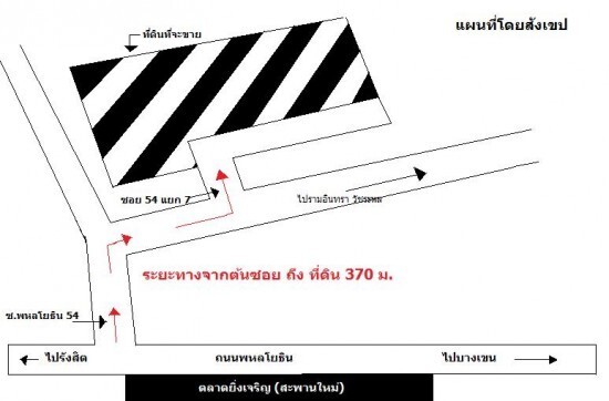 ขายที่ดินเปล่า ทำเลดี ซอยพหลโยธิน 54 (เทียนสวน) 5 ไร่ 3 งาน 43 วา ห่างจากปากซอยเพียง 370 เมตร ใกล้สาธารณูปโภค เช่น ตลาดยิ่งเจริญ(สะพานใหม่), โลตัส , SBAC , โรงพยาบาลภูมิพล, Big C,มีโครงการรถไฟฟ้าวิ่งผ่าน เหมาะสำหรับทำเป็นอพาทร์เมนท์ หรือคอนโด และอื่นๆ ไม่มีภาระผูกพันกับธนาคารเพียงตารางวาละ 30,000 บาท (งดนายหน้า)