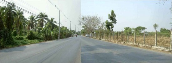 2. ทำเขื่อนกั้นน้ำ ด้านหน้าและด้านข้าง ในที่ดินส่วนแรก และที่ดินถมเต็มเท่ากับระดับถนน ที่ดินอีกฝากเป็นสวนมะพร้าว