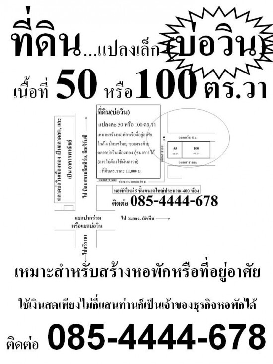 ----4---- ขายที่ดิน ใกล้โรบินสัน ศรีราชา ชลบุรี 300 ม. อยู่ระหว่างแยก รร.อัสสัมศรีราชา กับ แยกตึกคอม เป็นหมู่บ้านติดถนนสุขุมวิทเข้าหมู่บ้านไป 100 ม. พั้นที่ 86 ตร.วา ขาย 4,900,000 บาท ต่อรองได้ครับ 086-3170898, 085 4444678 ที่ดินอยู่ในหมู่บ้านจัดสรรมีหอพักและคอนโดในหมู่บ้านหลายตึก สงบเงียบกลางเมืองศรีราชาเหมาะทำหอพักหรือร้านค้าส่ง สะดวกมาก กลางเมืองตัวจริงครับ ถนนหน้าบ้านกว้าง 10 เมตร อยู่ในหมู่บ้านจัดสรร มีสวนหน้าบ้านด้วยนะครับ หมู่บ้านติดถนนสุขุมวิทเลย อยู่ตรงกลางระหว่าง โรบินสันศรีราชา กับ ตึกคอม อยู่อาศัยเมืองสุดๆครับ ถ้ามีลูกกลับดึกๆ จะได้ไม่ต้องกังวลเลย อยู่ในหมู่บ้านจัดสรร มีแต่อพาร์เม้น ไม่มีเปรี่ยวครับปากซอยมี ร้านอาหาร มี 7-11 ครับ อยู่ติดกับ สละอพาร์เม้น, Sweet Home, Little Town ค่าเช่าห้องพักไม่ต่ำกว่า 3,000 บ/ด ครับ 086-3170898, 085 4444678