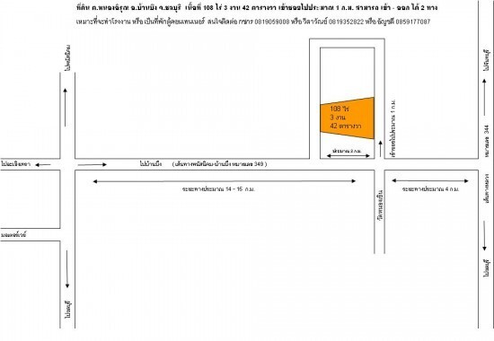 ขายที่ดินเนื้อที่ 108 ไร่ 3 งาน 42 ตารางวา อยู่บน ถ.พนัสนิคม-บ้านบึง (หมายเลข 349) ห่างจากทางหลวงหมายเลข 344 (ชลบุรี-แกลง) ประมาณ 4 ก.ม. เหมาะสำหรับทำโรงงาน หรือที่พักตู้คอนเทนเนอร์ ฯลฯ
