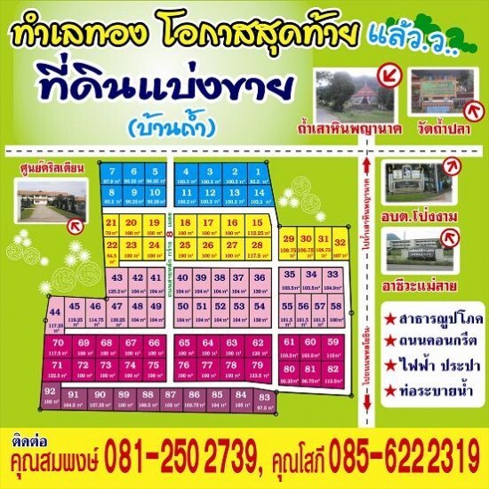 ที่ดินแบ่งขาย ตรว.ละ 3,500 บาท (เชียงราย) ใกล้สถานที่ท่องเที่ยว