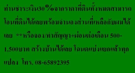 ขายที่ดินแปลงละ 100ต.ร.วๆละ900บาท จอง+ทำสัญญา+ผ่อนต่อเดือน2000ผ่อนปลอดดอกเบี้ย3ปี อ.เมือง อุทัยธานี ติดทะเลสาป ใกล้แม่น้ำเจ้าพระยา โทร. 0865892395