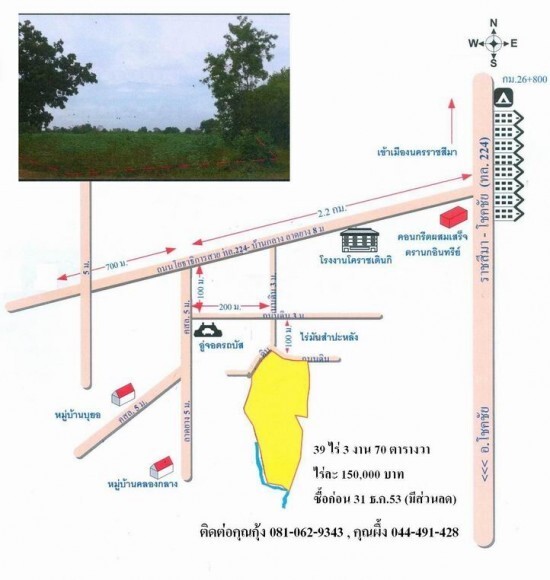 ขายที่ดินโฉนด 39-3-70 ไร่ ต.โชคชัย อ.โชคชัย จ.นครราชสีมา