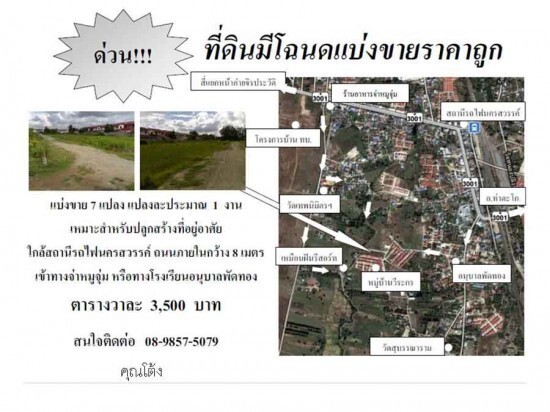 แบ่งขาย 7 แปลงแปลงละ 1 งาน เหมาะสำหรับปลูกสร้างที่อยู่อาศัย ใกล้สถานีรถไฟนครสวรรค์
