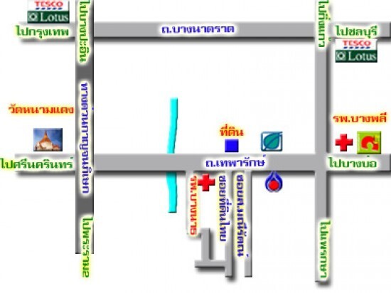-ขายที่ดิน เทพารักษ์ กม.11 เนื้อที่ประมาณ 1.5ไร่ ติดถนนเทพารักษ์ หน้ากว้าง 17 เมตร แต่ขนาดที่ดินโตด้านใน เป็นรูปคล้ายธงชาติ ราคาตารางวาละ 75,000 บาท
