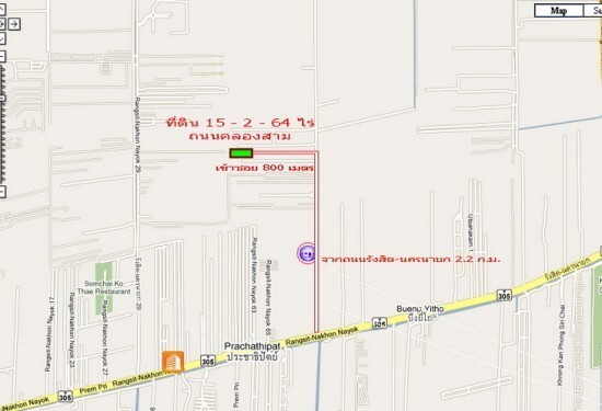 ขายที่ดินรังสิตคลองสาม 15 ไร่ 2 งาน 64 ตารางวา จากถนนรังสิต-นครนายกก่อนข้ามสะพานคลองสาม เลี้ยวซ้ายเข้าถนนคลองสามประมาณ 2 กิโลเมตร เลี้ยวซ้ายเข้าซอย 800 เมตร ซอยอยู่ระหว่าง ซอย 1/7 ถึง 1/9 จุดสังเกตหน้าปากซอยด้านขวาจะมีร้านรับซื้อของเก่า และเข้าซอยประมาณ 50 เมตรด้านซ้ายจะเป็นที่ว่างลานจอดรถบัสทัศนาจร ตรงเข้าซอย 800 เมตร ที่ดินถมแล้วหน้ากว้าง 80 เมตร ลึก 310 เมตร ซอยกว้างกันแนว 14 เมตร ปัจุบันถนนกว้าง 6 เมตรเหมาะทำโรงงาน โกดัง ที่พักสินค้า ขาย 30,000,000 บาท ราคาประเมินกรมที่ดินตารางวาละ 4,500 บาท ติดต่อ ภาณุวัชร 08-1734-0994