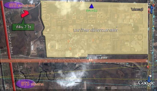ขขายที่ดิน7ไร่ หลังม.ธรรมศาสตร์ แปลงหัวมุม ติดถนนคอนกรีต ไกล้ปากทางเท้าออกม.ธรรมศาสตร์เพียง 100 เมตร เหมาะทำอพาทเมนท์คอนโด ไกล้สถานีรถไฟฟ้าธรรมศาสตร์เพียง 800 เมตร ขายถูกเพียง 23,000 /ตารางวา