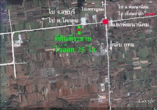 เป็นโฉนด 25 ไร่ อยู่ในเขต จ.ลพบุรี อ.พัฒนานิคม ต.ช่องสาริกา ใกล้เขื่อนป่าสักชลสิทธิ์