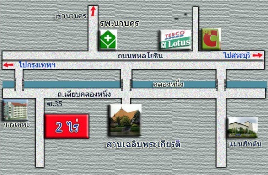 ขายที่ดิน 2 ไร่ ย่านนวนคร หน้ากว้างประมาณ 40 เมตรติดถนนลาดยาง ขายถูกเพียง 12,000/ ตารางวา แวดล้อมไปด้วยแหล่งสาธารณูปโภคและสถานที่สำคัญมากมาย เช่น บ้านเอื้ออาทร รพ.นวนคร ห้างบิ๊กซี โลตัส สวนเฉลิมพระเกียรติ นิคมอุตสาหกรรมนวนครฯลฯ เข้าซอยจากพหลโยธินเพียง 200