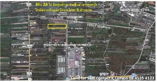 ขายที่ดิน 24 ไร่ ติดศูนย์กระจายสินค้าลาดกระบัง ใกล้สนามบินสุวรรณภูมิ และนิคมฯ ลาดกระบัง