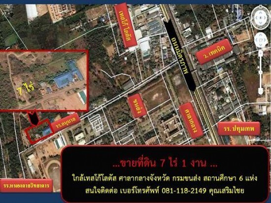 ขายที่ดินทำเลทอง 7 ไร่ 1 งาน ใกล้เทสโก้โลตัส ศาลากลางจังหวัด กรมขนส่ง สถานศึกษา 6 แห่งสนใจติดต่อ เบอร์โทรศัพท์ 081-118-2149 คุณเสริมไชย