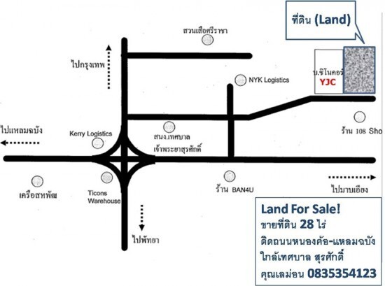 ขายที่ดินแหลมฉบัง ติดถนนหนองค้อ-แหลมฉบัง 28 ไร่ ใกล้เทศบาลสุรศักดิ์