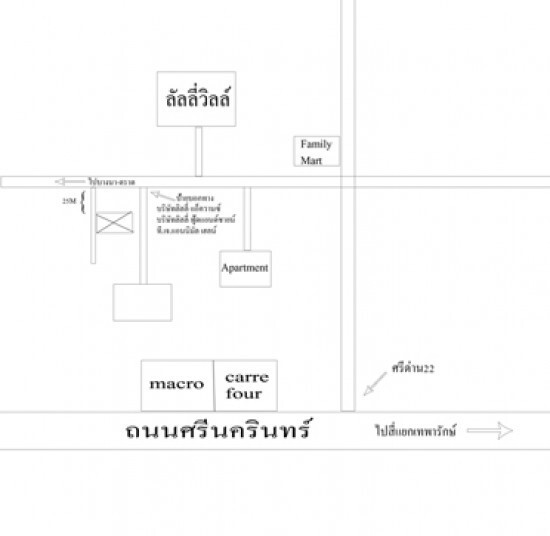 อยู่หลังโลตัส แมคโคร ศรีนครินธ์ ใกล้ เส้นบางนาตราด เนื้อที่ 105 ตารางวา ใกล้หมู่บ้านลัลลี่วิลล์
