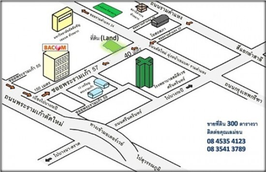 ขายที่ดินทำเลทอง ปากซอยหัวหมาก 21 (ถนนหัวหมาก-เอแบค) หรือซอยพระรามเก้า 57 เนื้อที่ 301 ตารางวา ราคาพิเศษ
