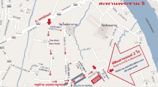 หลังหมู่บ้าน นนทกาญจน์ เข้าออกได้หลายทาง อยู่ในย่านวัดโชติการาม-วัดสังฆทาน-The Rich/The Boss Hotel