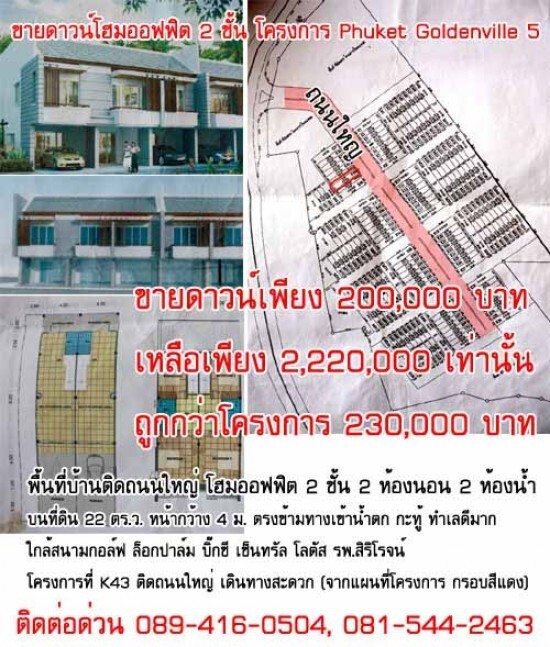 ขายดาวน์โฮมออฟฟิต 2 ชั้น โครงการ Phuket Goldenville 5 (ประหยัดได้ 230,000 บาท)