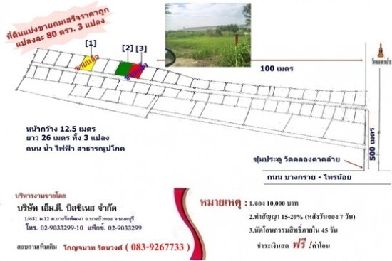 ขายที่ดินเปล่า ที่ดิน 80 ตรว. ถ.บางกรวย-ไทรน้อย เหมาะ ที่อยู่อาศัย โกดัง โรงงาน