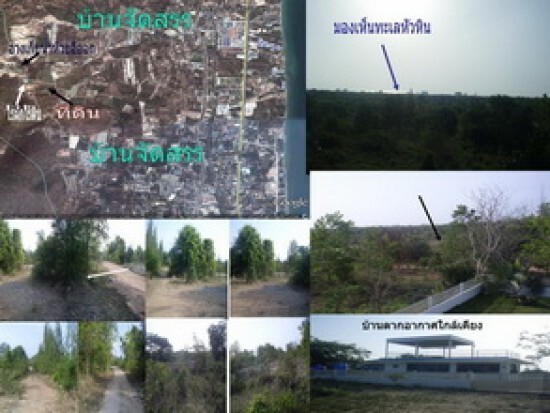 อยู่บนเนินเขามองเห็นทะเลที่บ่อฝ้ายหัวหินใกล้ไร่ผักไร้ดินและอ่างเก็บน้ำห้วยอีออกและ โครงการหมู่บ้านจัดสรร 4แปลงเรียงติดกันด้านข้างมีบ้านตากอากาศ1หลังมองเห็นทะเลทุกแปลงห่างถนนเพชรเกษม2ก.ม.ไฟฟ้าประปาใกล้ที่ดิน