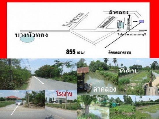 ขายที่ดิน 855 ตรวๆ ละ 7500 บาท ติดคลองลาดหวายบางบัวทอง จ.นนทบุรี ถมแล้วคลองกว้างเรือแล่นผ่านได้
