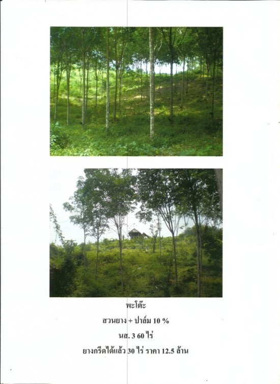 ขาย ที่ดินสวนยางพารา นส.3 60 ไร่ ยางกรีดได้แล้ว 30 ไร่ ราคา 12.5 สนใจติดต่อ คุณภณ 081-8902788 077-659966