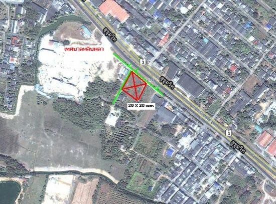 ขายที่ดินโฉนดว่างเปล่าติดถนนสุขุมวิท ขนาด 100 ตรว. (กว้าง 20 เมตร ยาว 20 เมตร) ข้างเทศบาลพลับพลา