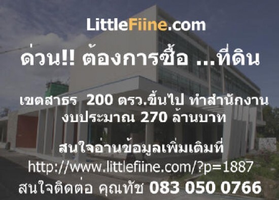 ต้องการซื้อที่ดิน เขตสาธร เนื้อที่ 200 ตารางวาขึ้นไป เพื่อทำสำนักงาน งบประมาณ 270 ล้านบาท ตกตารางวาล่ะ ~1 – 1.3 ล้านบาท