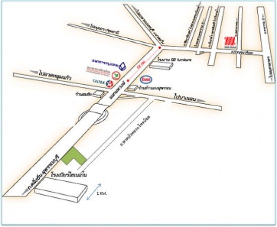อยู่ติดถนนไทรน้อย-ลาดบัวหลวง มีถนนภายในที่ดิน