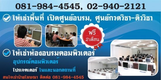 ให้เช่าพื้นที่เปิดศูนย์อบรมคอมพิวเตอร์ ศูนย์กวดวิชา ศูนย์ติววิชา