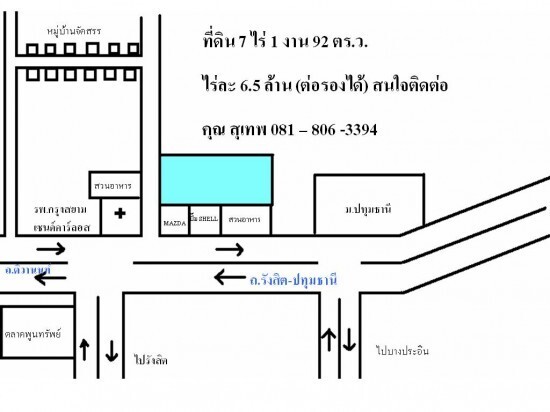 !!!!!!!!!!!!! ขาย ที่ดิน ทำเลดี ---อ.เมือง---จ.ปทุมธานี---ใกล้ รพ.กรุงสยามเซนต์คาร์ลอส 7 ไร่