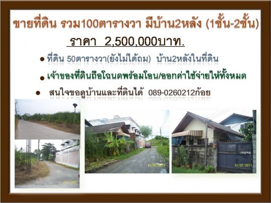 ขายทีดิน 100ตารางวาพร้อมบ้าน2หลัง ราคา2,500,000บาท