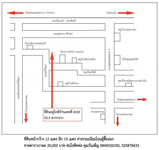 พื้นที่ 53.5 ตารางวา รายละเอียดเพิ่มเติมติดต่อ 0844336330