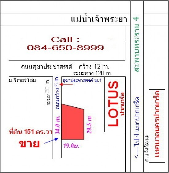 ขาย/เช่า ที่ดินปากเกร็ด นนทบุรี ติด Lotus 151 ตร.วา