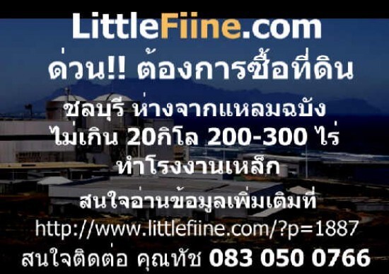 ต้องการซื้อ ที่ดิน ชลบุรี ห่างจากแหลมฉบังไม่เกิน 20 กิโลเมตร เนื้อที่ 200-300 ไร่ ทำโรงงานเหล็ก นายทุนฮ่องกง