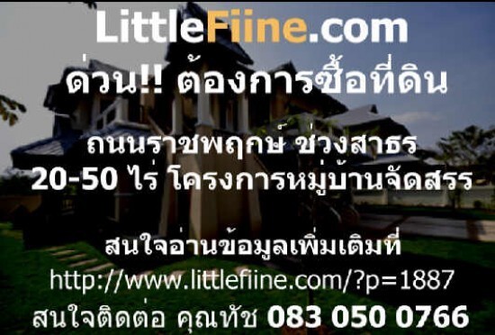 ต้องการซื้อที่ดิน ย่านถนนราชพฤกษ์ ช่วงในเมือง ใกล้ๆ สาธร เนื้อที่ 20-50 ไร่ ทำโครงการหมู่บ้านจัดสรร