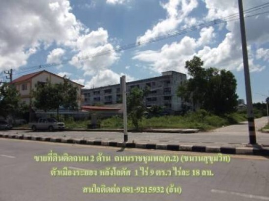 ขายที่ดินติดถนน 2 ด้าน ถนนราชชุมพล(ค.2) (ขนานสุขุมวิท) ตัวเมืองระยอง หลังโลตัส 1 ไร่ 9 ตร.ว ไร่ละ 18 ลบ.