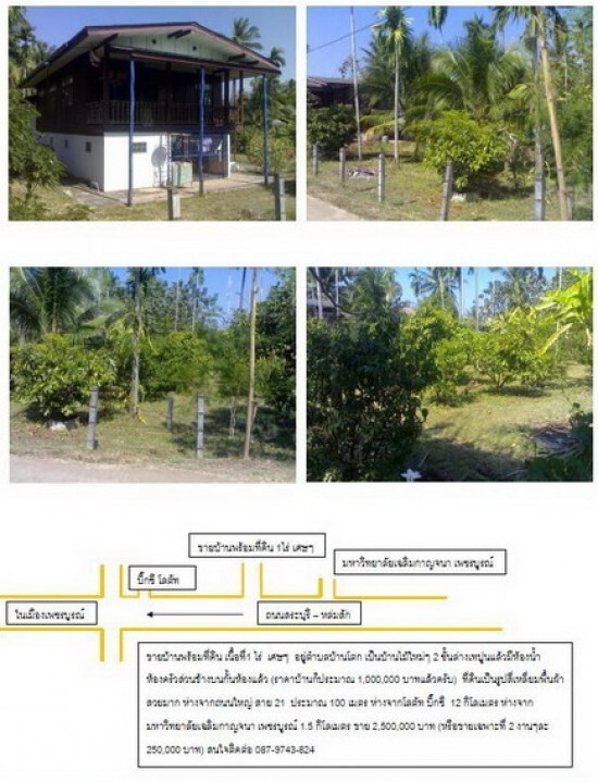ขาย บ้านพร้อมที่ดิน เนื้อที่1 ไร่ 37 ตารางวา ที่เป็นส่วนมะปาง มะม่วงอยู่ตำบลบ้านโตก อ.เมือง จ.เพชรบูรณ์ เป็นบ้านไม้ใหม่ๆ 2 ชั้นล่างเทปูนแล้วมีห้องน้ำ ห้องครัวส่วนข้างบนกั้นห้องแล้ว(ราคาบ้านก็ประมาณ 1,000,000 บาทแล้วครับ) ที่ดินเป็นรูปสี่เหลี่ยมพื้นผ้า สวยมาก ห่างจากถนนใหญ่ สาย 21 ประมาณ 100 เมตร ห่างจากโลตัท บิ๊กซี 12 กิโลเมตร ห่างจากมหาวิทยาลัยเฉลิมกาญจนา เพชรบูรณ์ 1.5 กิโลเมตร ขาย 2,500,000 บาท (หรือขายเฉพาะที่ 2 งานๆละ 250,000 บาท) สนใจติดต่อ 087-9743-824