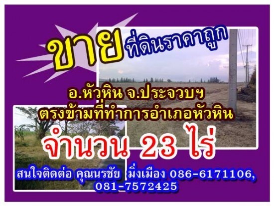 ขายที่ดินหัวหิน(ราคาถูก)จำนวน 23ไร่ อยู่ตรงข้ามที่ว่าการอำเภอหัวหิน