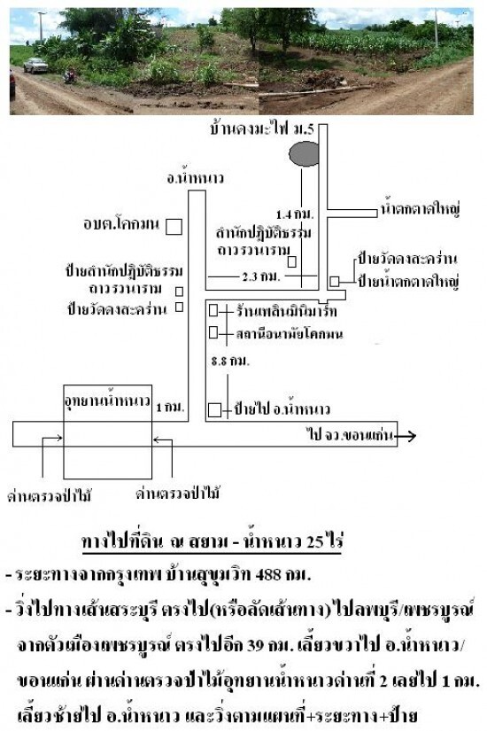 ที่เป็นเนิน ติดถนนทางเข้าหมู่บ้าน และใกล้น้ำตก