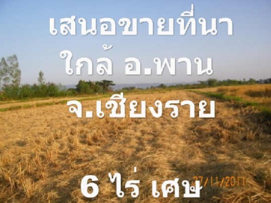 [เสนอขายที่ดิน (ที่นา)][ใกล้ อ.พาน จ.เชียงราย][6 ไร่เศษ]