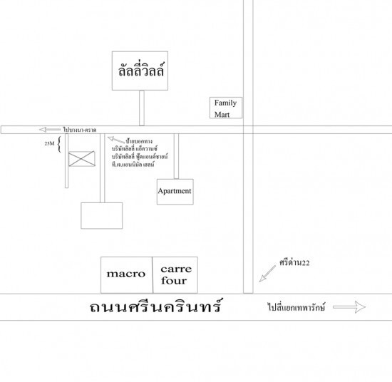 ที่ดินเปล่า อยู่หลังโลตัส แมคโคร ศรีนครินธ์ ใกล้ เส้นบางนาตราด เนื้อที่ 105 ตารางวา/ตารางวาละ 35,000.-