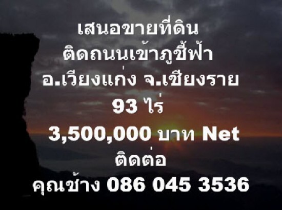[เสนอขายที่ดิน][ติดถนนภูชี้ฟ้า ตำบลปอ อำเภอเวียงแก่น จังหวัดเชียงราย ][93 ไร่่][3,500,000 บาท net]