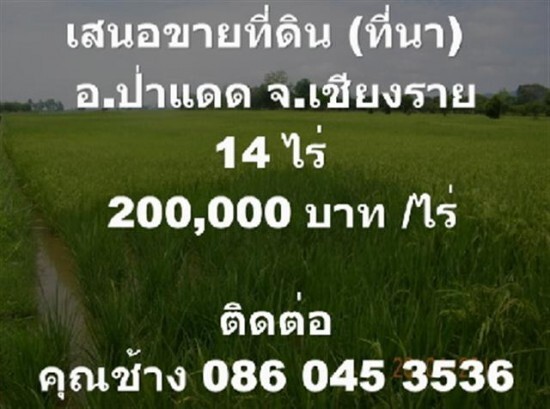 [เสนอขายที่ดิน (ที่นา)][อ.ป่าแดด จ.เชียงราย][14 ไร่][200,000/ไร่]