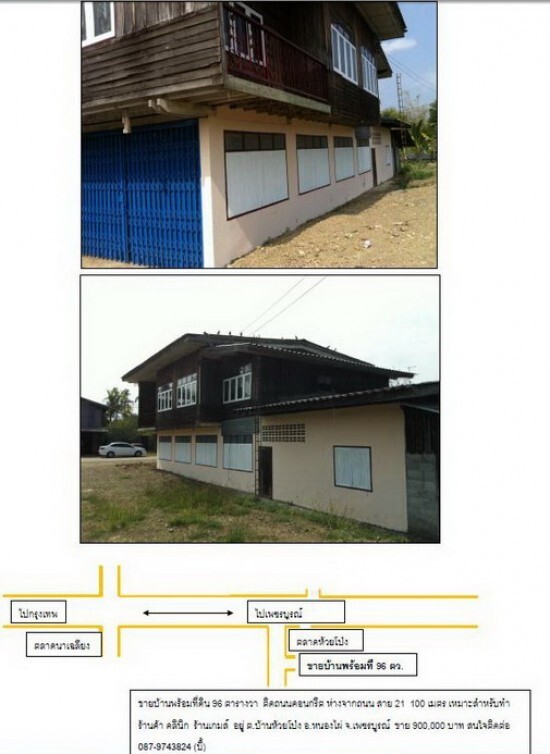 ขายบ้านพร้อมที่ดิน 96 ตารางวา ติดถนนคอนกรีต ห่างจากถนน สาย 21 100 เมตร เหมาะสำหรับทำ ร้านค้า คลินิก ร้านเกมส์ อยู่ ต.บ้านห้วยโป่ง อ.หนองไผ่ จ.เพชรบูรณ์ ขาย 900,000 บาท สนใจติดต่อ 087-9743824 (บี้)