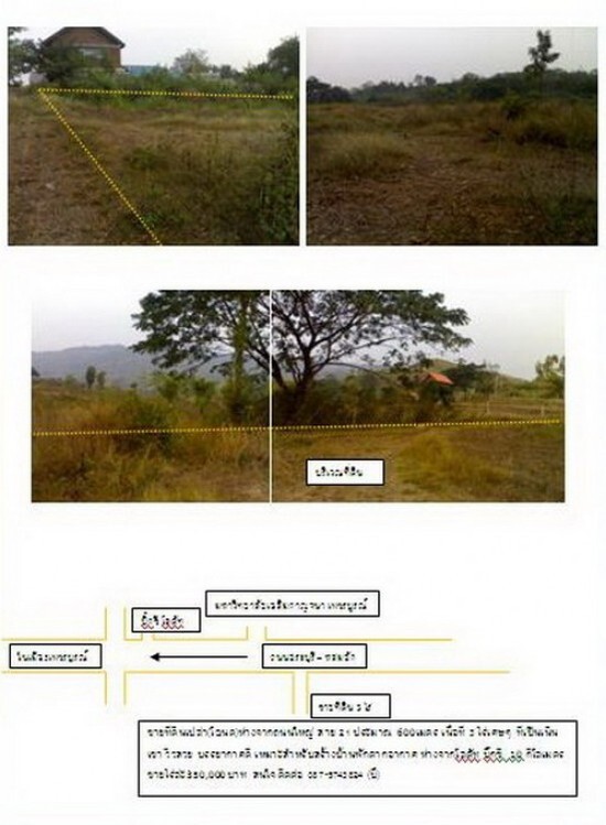 ขายที่ดินเปล่า(โฉนด)ห่างจากถนนใหญ่ สาย 21 ประมาณ 600 เมตร เนื้อที่ 3 ไร่เศษๆ ที่เป็นเนินเขา วิวสวย บรรยากาศดี เหมาะสำหรับสร้างบ้านพักตากอากาศ ห่างจากโลตัท บิ๊กซี 10 กิโลเมตร ขายไร่ล่ะ350,000 บาท สนใจติดต่อ 087-9743824 (บี้)