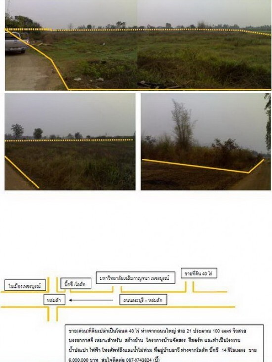 ขาย(ด่วน)ที่ดินเปล่าเป็นโฉนด 40 ไร่ ห่างจากถนนใหญ่ สาย 21 ประมาณ 100 เมตร วิวสวย บรรยากาศดี เหมาะสำหรับ สร้างบ้าน โครงการบ้านจัดสรร รีสอร์ท และทำเป็นโรงงาน น้ำประปา ไฟฟ้า โทรศัพท์ถึงและน้ำไม่ท่วม ที่อยู่บ้านยาวี ห่างจากโลตัท บิ๊กซี 14 กิโลเมตร ขาย 6,000,000 บาท สนใจติดต่อ 087-9743824 (บี้)