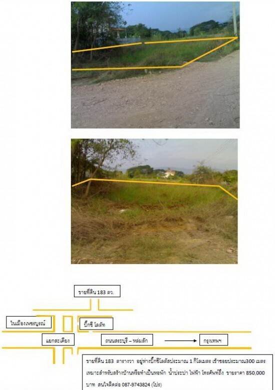 ขายที่ดิน 183 ตารางวา อยู่ห่างบิ๊กซีโลตัสประมาณ 1 กิโลเมตร เข้าซอยประมาณ300 เมตร เหมาะสำหรับสร้างบ้านหรือทำเป็นหอพัก น้ำประปา ไฟฟ้า โทรศัพท์ถึง ขายราคา 850,000 บาท สนใจติดต่อ 087-9743824 (โปร)