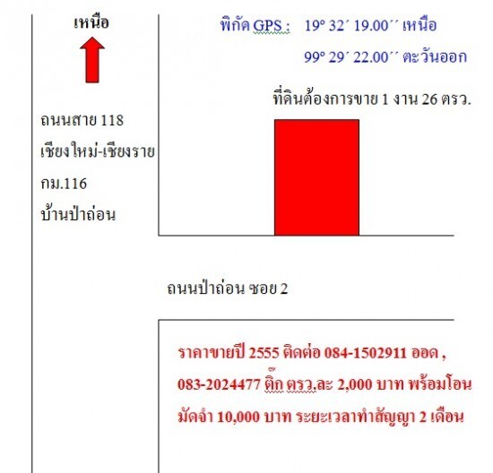 ขายที่ดิน 126 ตรว. ละ 2000 พร้อมโอน บ้านป่าถ่อน อ.ท่าก๊อ จ.เชียงใหม่ 0841502911(ออด)